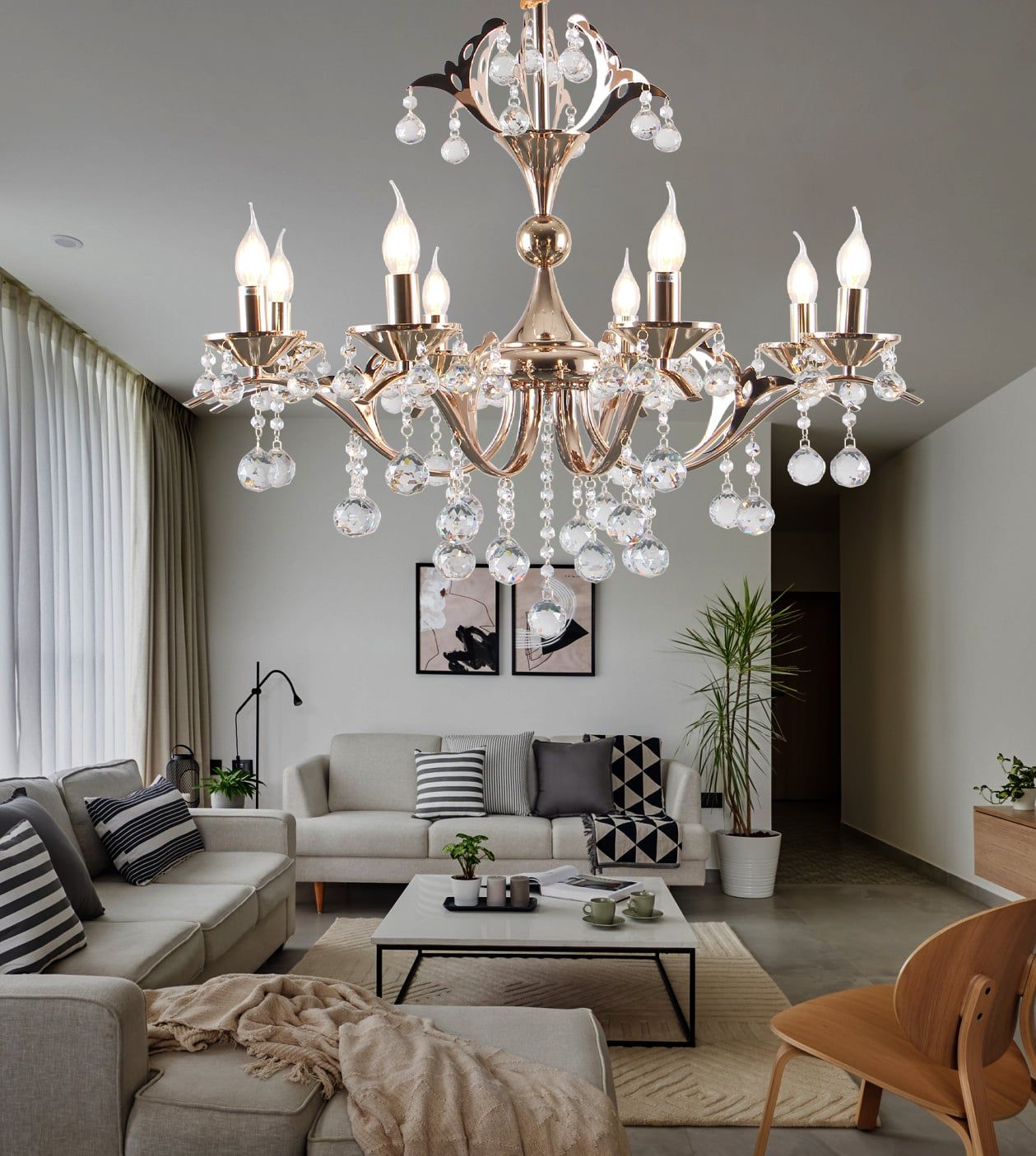 đại diện cho sự giàu sang, quý phái bậc nhất, thể hiện đẳng cấp cho không gian sống của khách hàng.Đèn chùm DC841T8