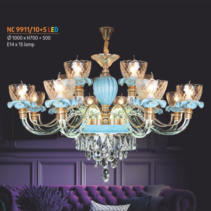 Ø1000xH700+500Kiểu Đèn chùm phòng khách, Đèn chùm phòng ăn, Đèn chùm phòng ngủ, đèn chùm sảnh Vật liệu Thân Kim Loại - Pha lê Nguồn điện áp AC/DC Mã sản phẩm NL-NC 9911