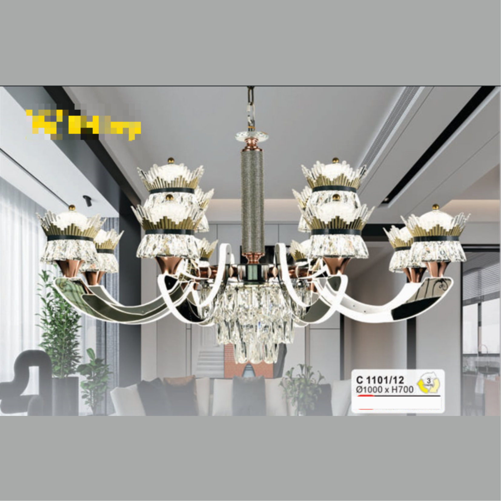 đại diện cho sự giàu sang, quý phái bậc nhất, thể hiện đẳng cấp cho không gian sống của khách hàng.Đèn chùm QN- C1101/12