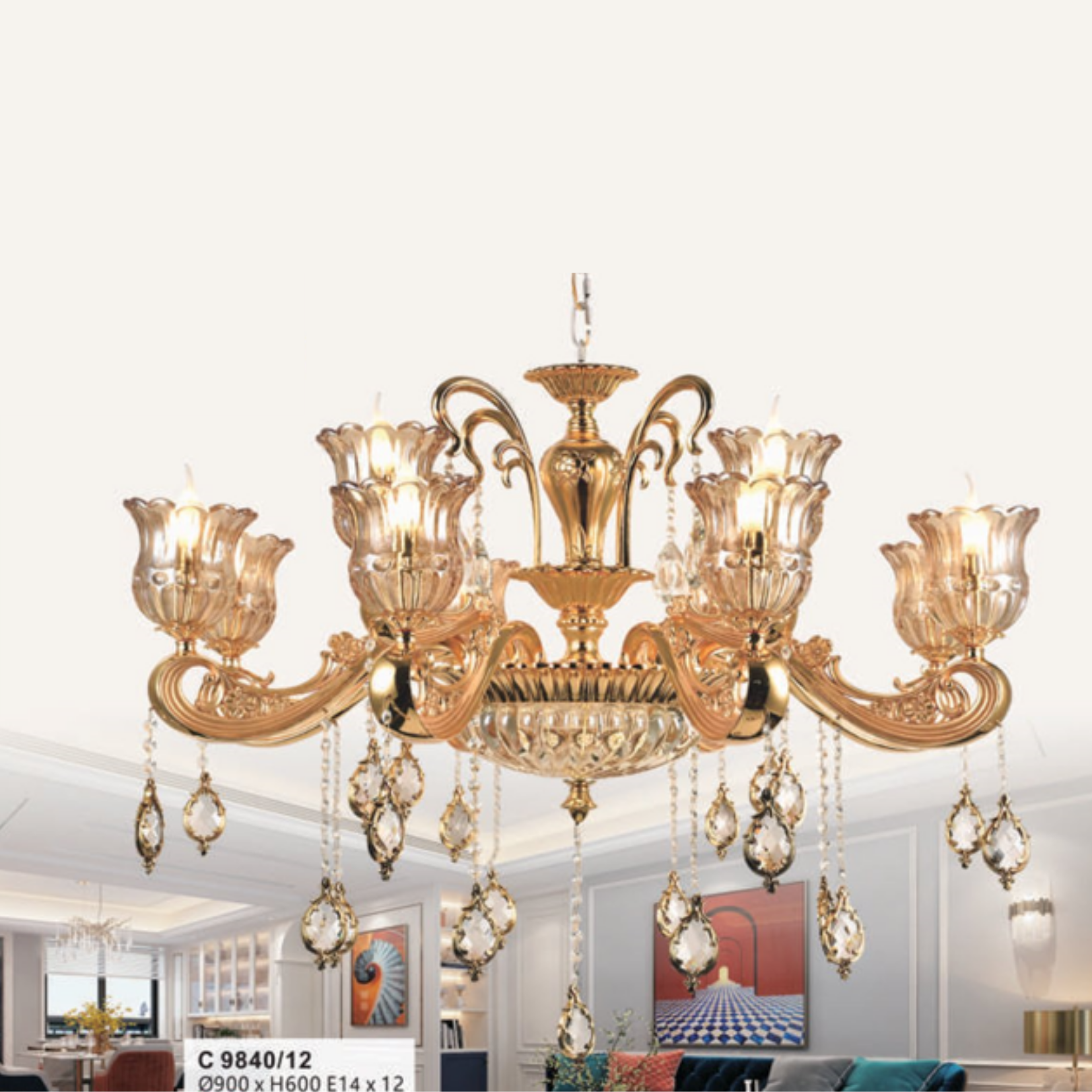 đại diện cho sự giàu sang, quý phái bậc nhất, thể hiện đẳng cấp cho không gian sống của khách hàng.Đèn chùm QN- C9840/12