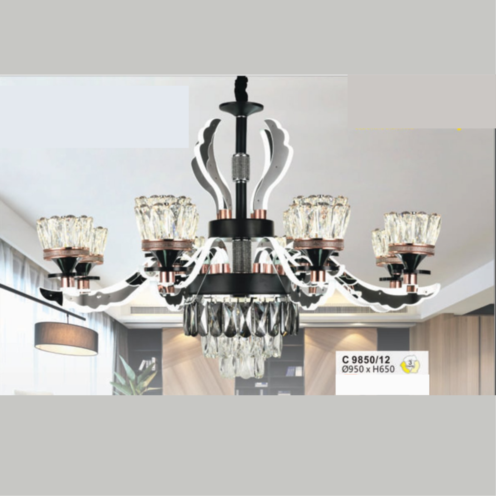 đại diện cho sự giàu sang, quý phái bậc nhất, thể hiện đẳng cấp cho không gian sống của khách hàng.Đèn chùm QN-C9850/12