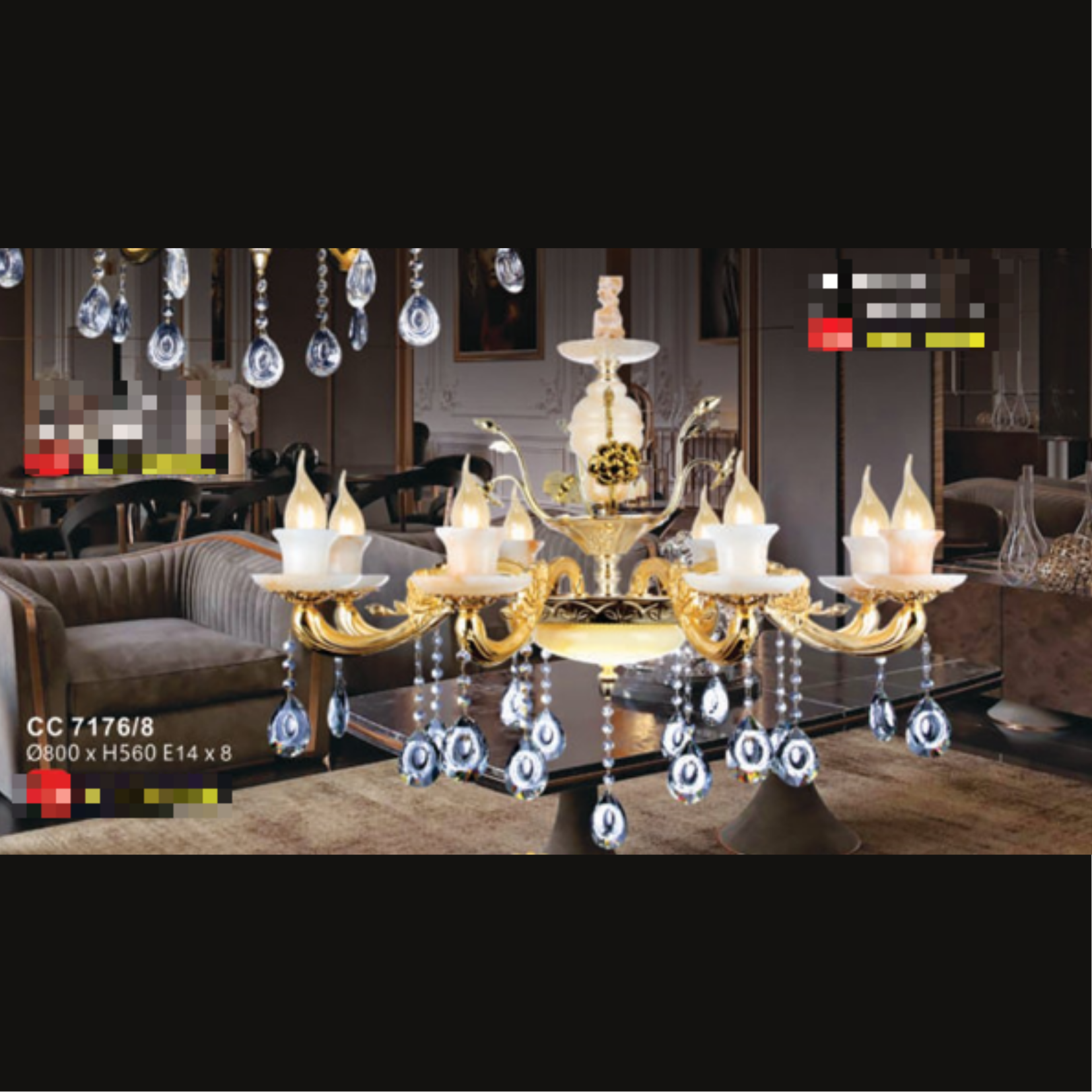 đại diện cho sự giàu sang, quý phái bậc nhất, thể hiện đẳng cấp cho không gian sống của khách hàng.Đèn chùm QN-CC7176/8