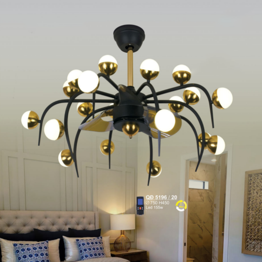 thiết kế theo nhiều phong cách đơn giản, hiện đại, dễ vệ sinh. Do đó, dòng sản phẩm này vẫn thể hiện vẻ đẹp sang trọng, quý phái của nó. Quạt đèn trang trí thích hợp với nhiều không gian và phong cách nội thất khác nhau.Đèn Quạt Trang Trí SN-QĐ5196
